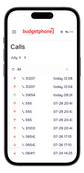 • Door op een gemiste oproep te klikken bel je meteen terug, via het bedrijfsnummer.