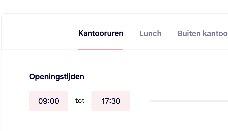 • Bovenaan de pagina zie je, “Kantooruren –  Lunch – Buiten kantooruren – …