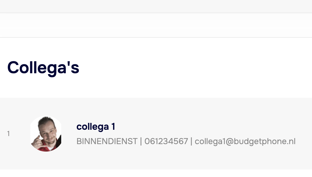 Je kan de andere nummers gebruiken om collega’s direct te laten bellen.